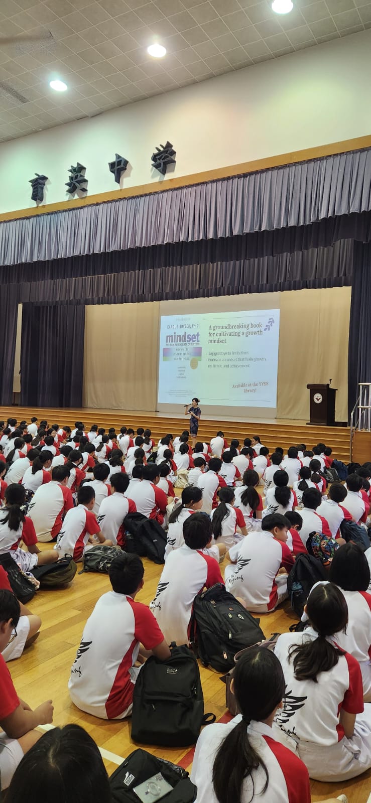 Students engaged in Book Buzz, inspired by the book Mindset by Carol Dweck at Morning Assembly.