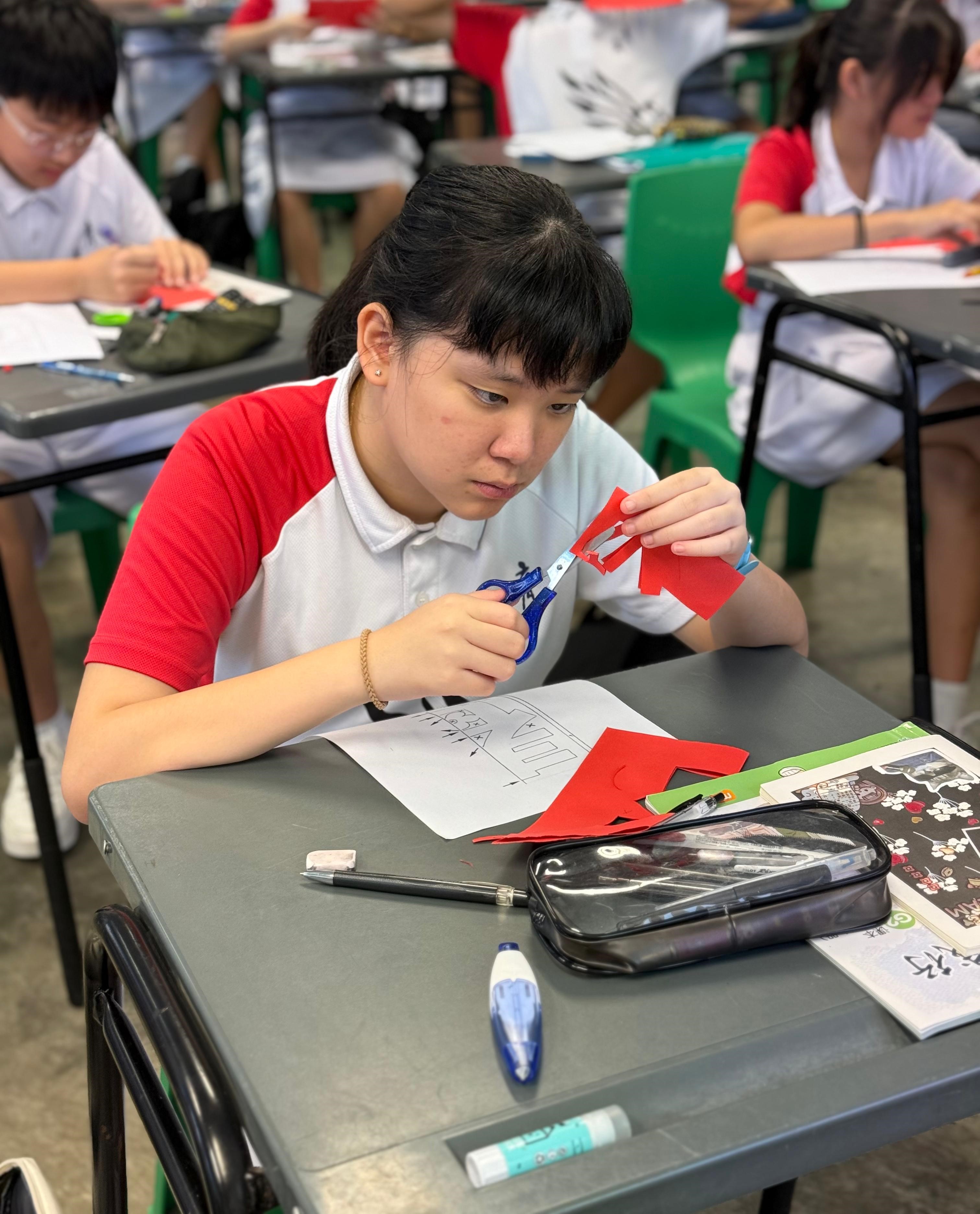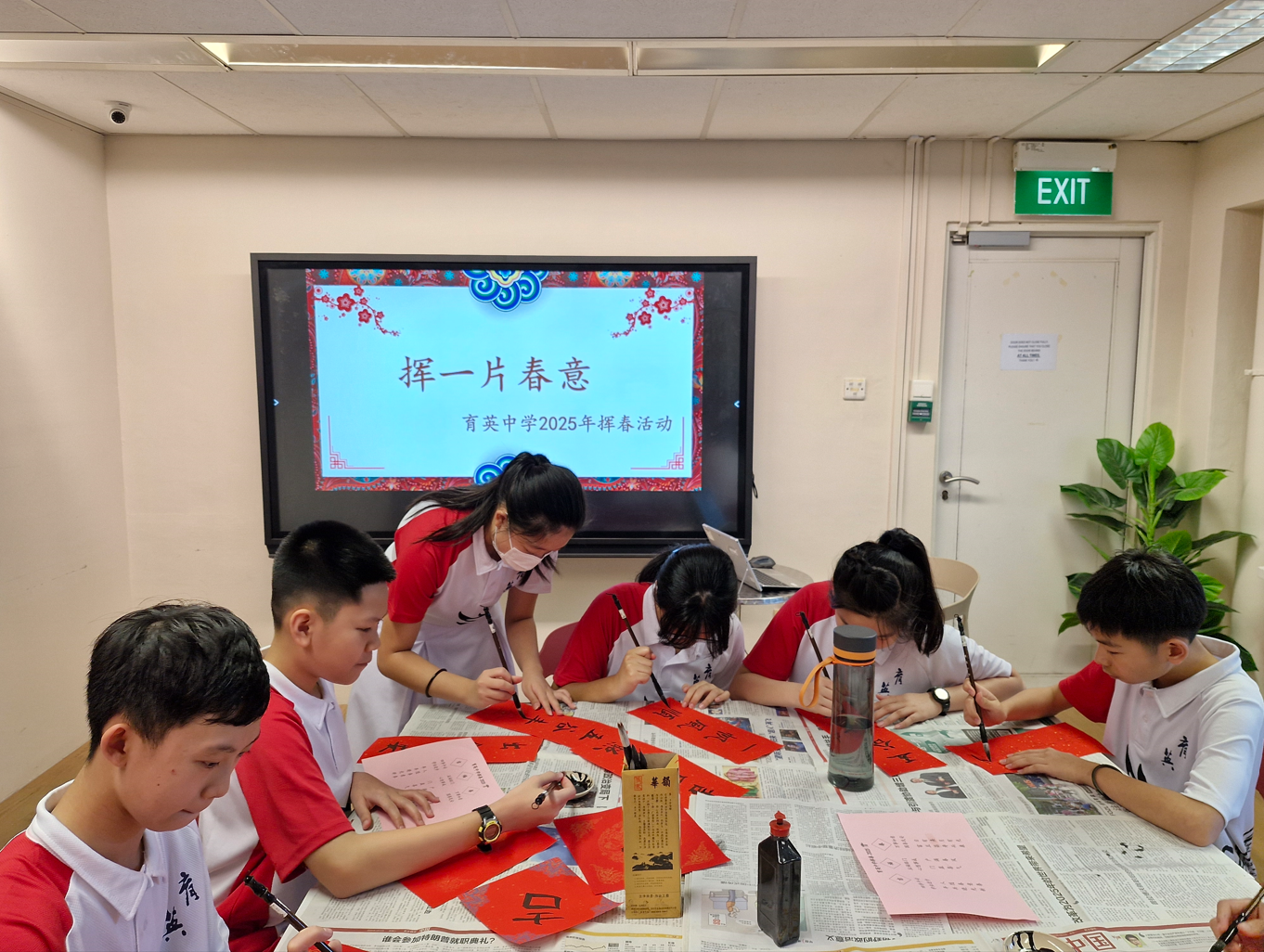 Students taking part in the Chinese New Year calligraphy activity, expressing creativity while appreciating cultural traditions.