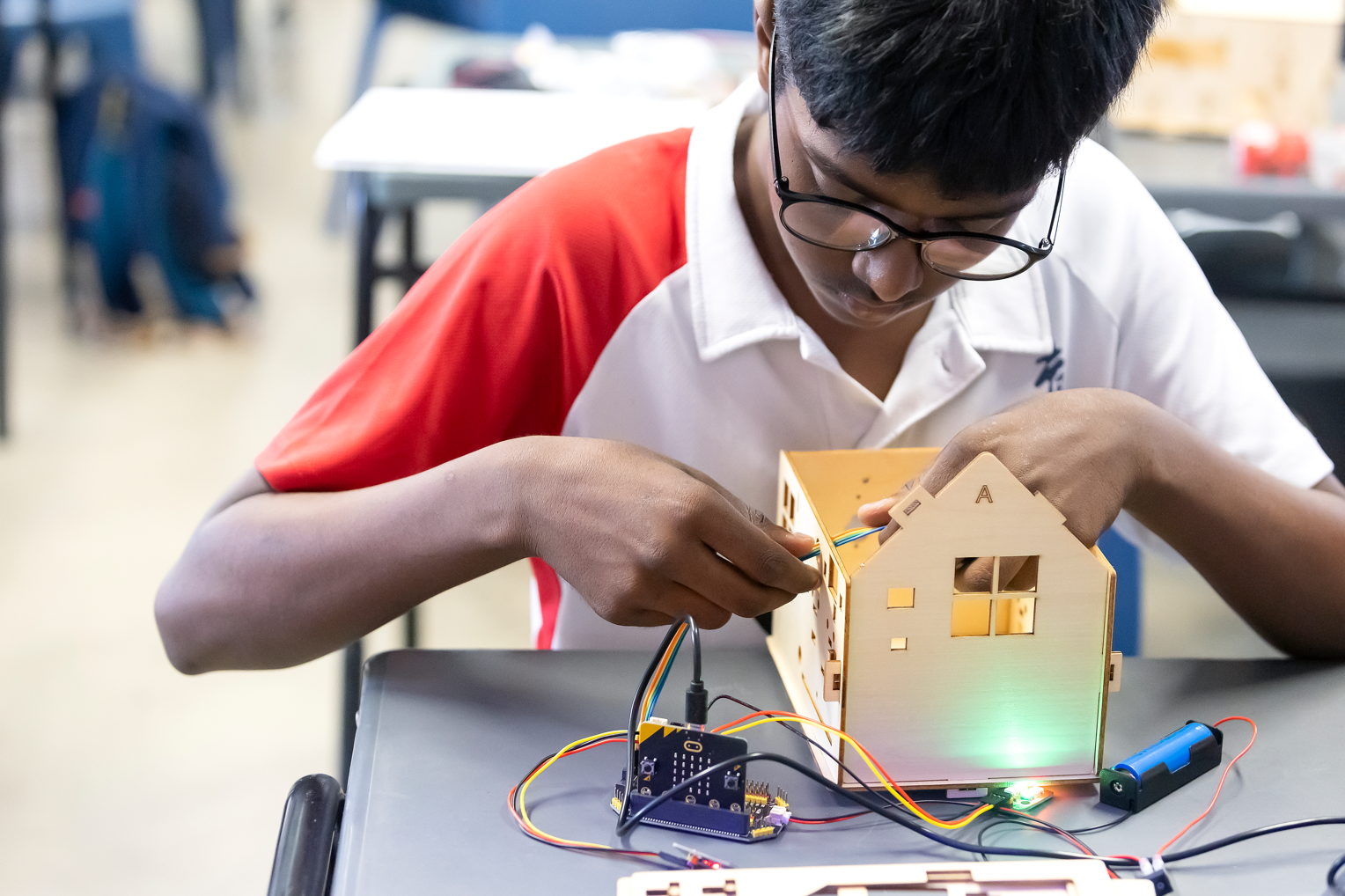 Student applying problem-solving and innovation skills as part of the STEM programme, learning to connect science and technology through hands-on exploration.