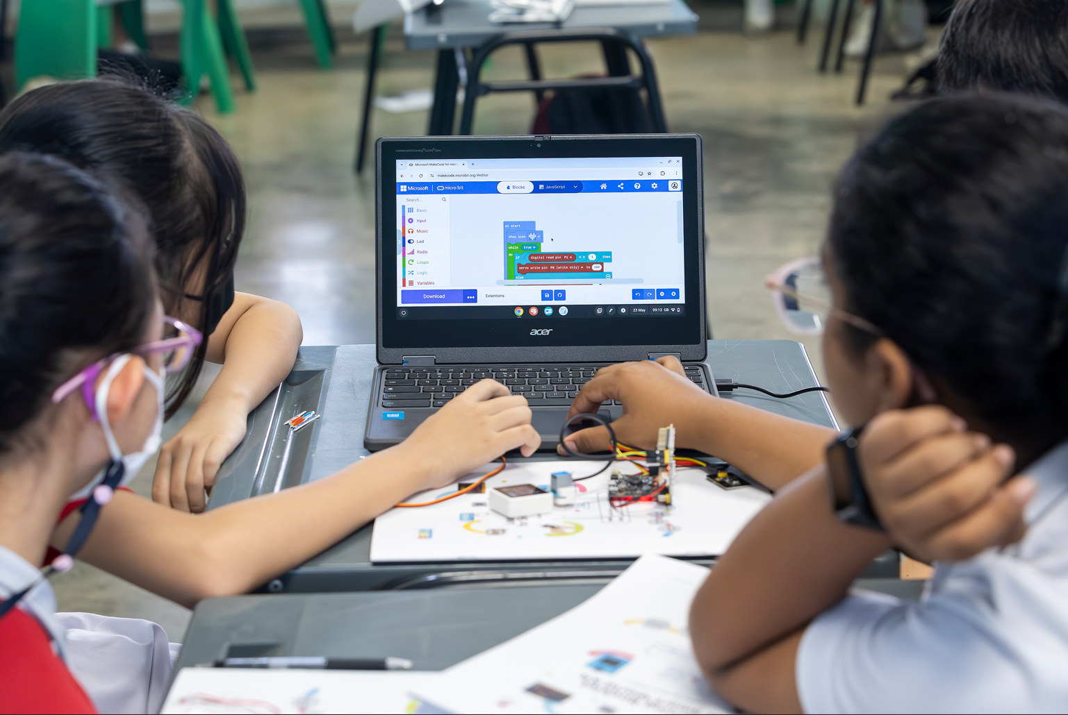 Students developing their digital innovation skills through coding and robotics, part of the school’s STEM and Talent Development initiatives.