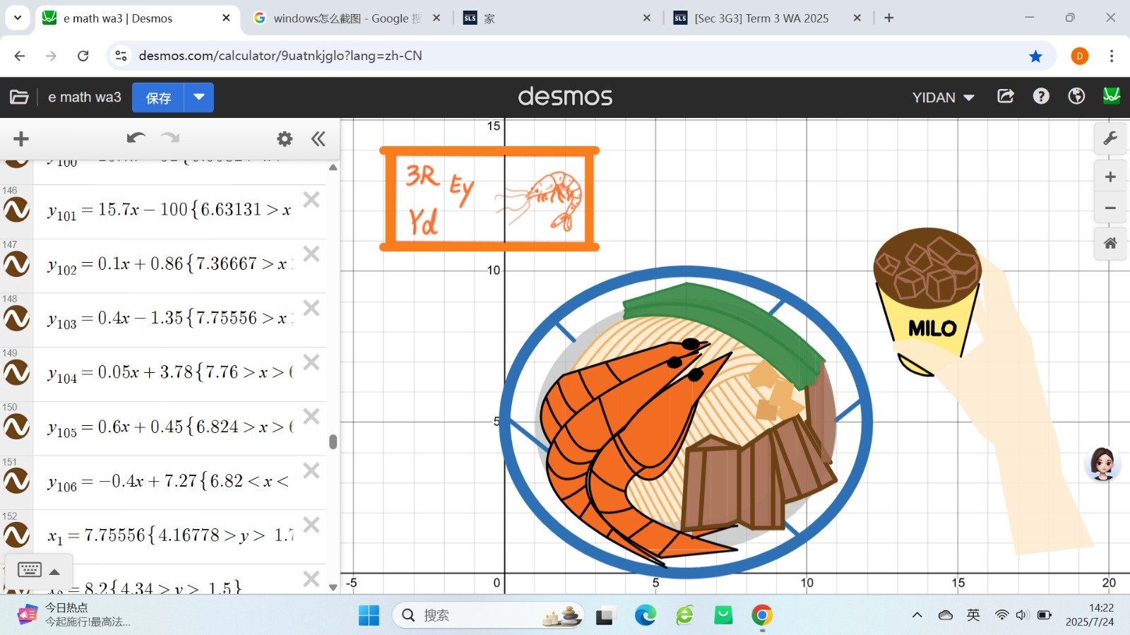 Our Secondary 3 students carry out a Mathematics and Art project, where use the Desmos graphing app to transform abstract functions into vibrant visual art. By strategically graphing various equations—including linear, quadratic, circular, and trigonometric functions—and carefully applying domain and range restrictions, students meticulously "draw" intricate images and pictures. This hands-on experience provides opportunity not only for students to deep their understanding of mathematical concepts but also to apply their knowledge and mathematical thinking creatively, inspiring remarkable visual artistry.