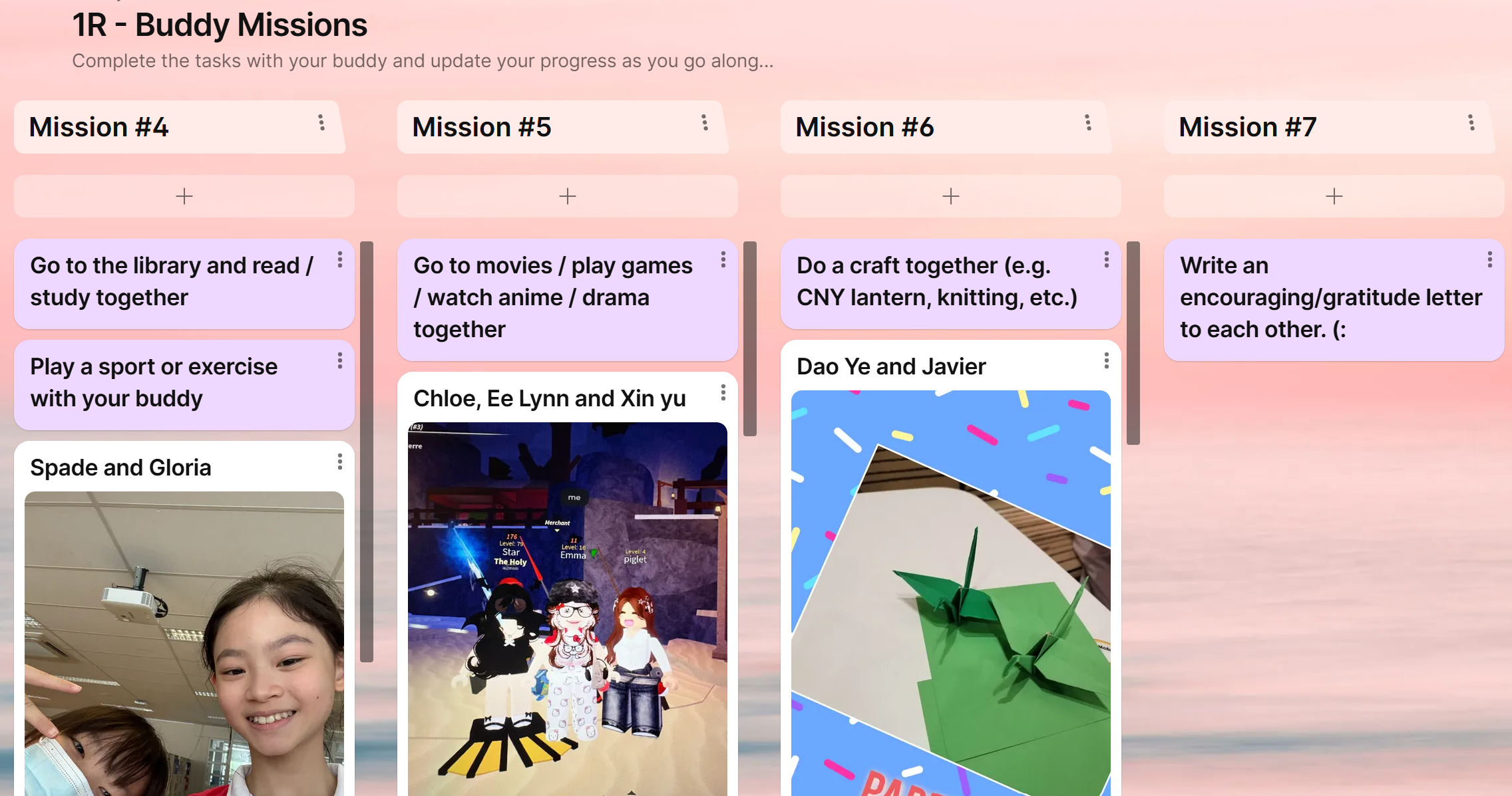 friendships, promote peer support, and foster class spirit through shared